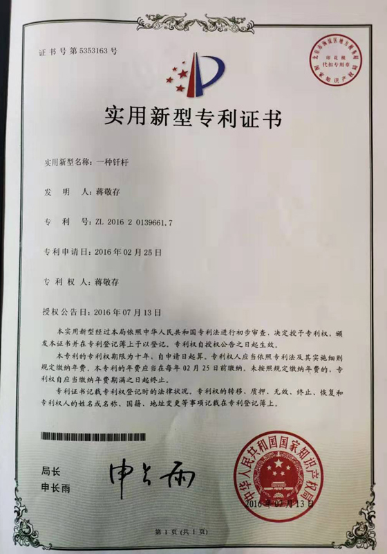实用专利新型证书