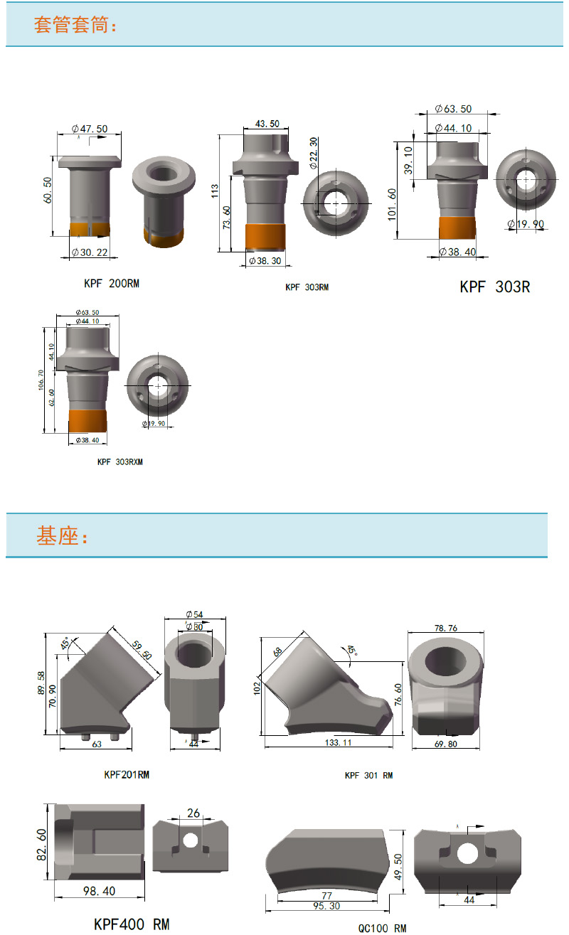Cold regeneration knife head, Tool head of road milling machine, Toolholder-Base of road milling machine, Toolholder, Base, Bushing, etc